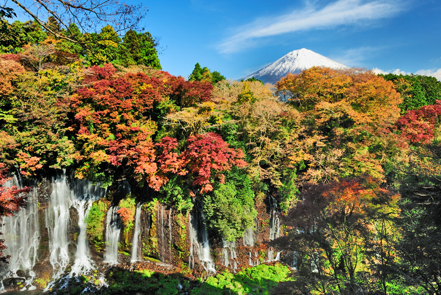 秋の白糸の滝と富士