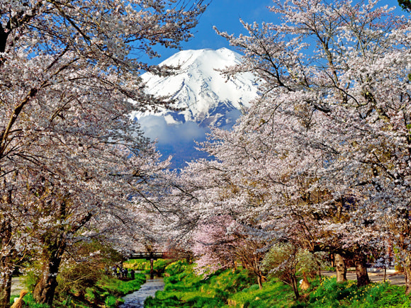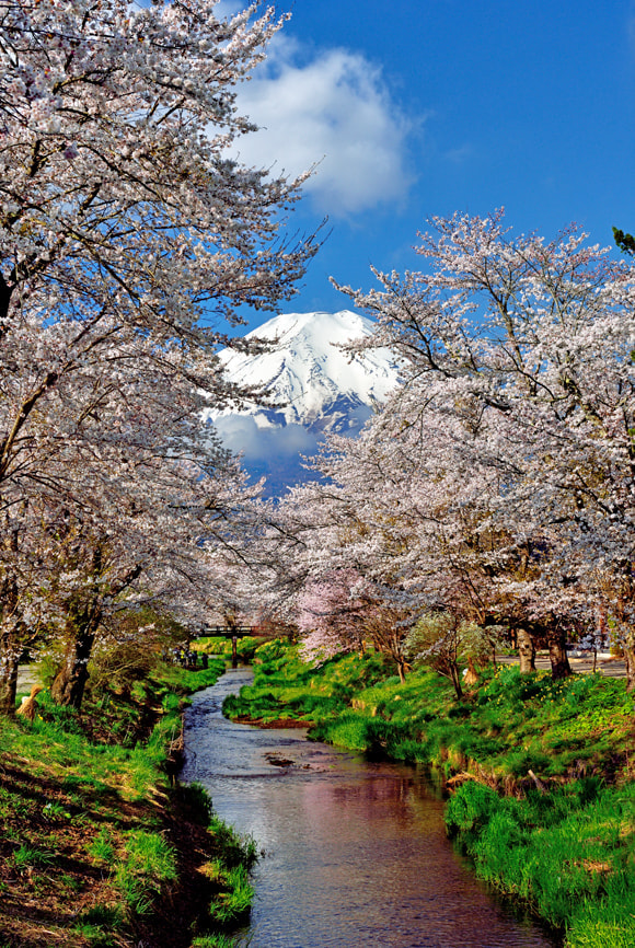春の新名庄川と富士