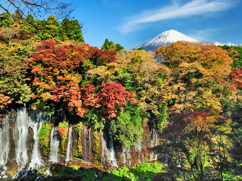 秋の白糸の滝と富士